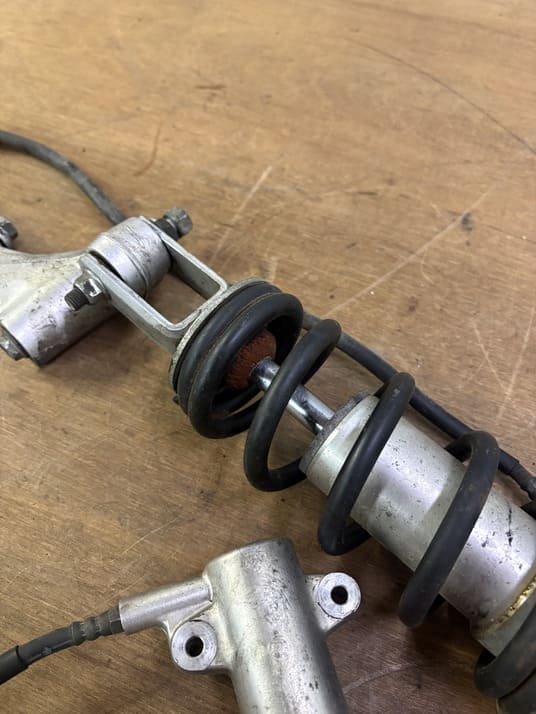 Points de contrôle : Absence de fuite hydraulique, état des silentblocs vérifié, tige d’amortisseur non marquée, compression et détente fluides.