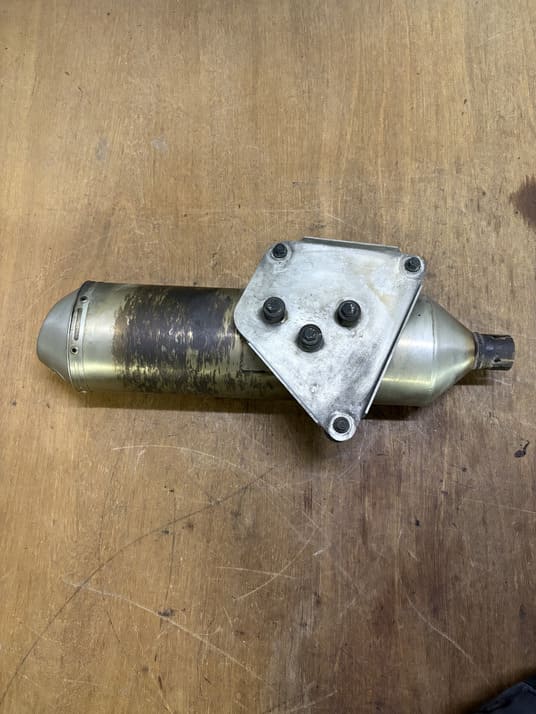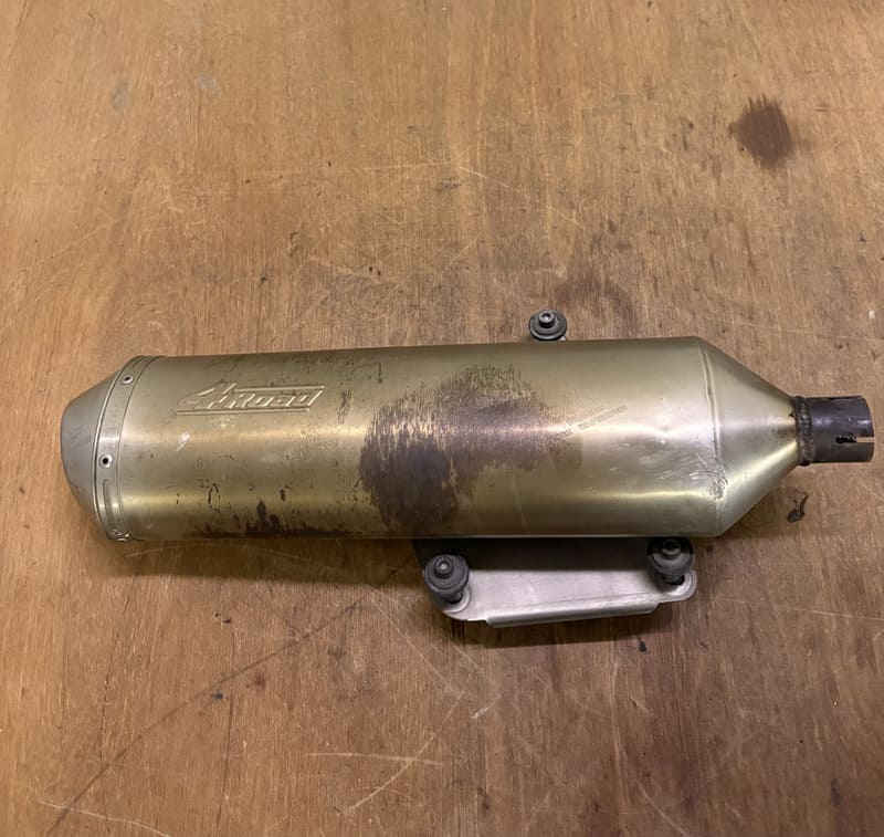 État : Occasion. État correct. Présence de rayures sur le corps du silencieux et de marques de chaleur/oxydation de surface (visibles sur photos). La structure interne est saine (pas de bruit de chicane dessoudée).